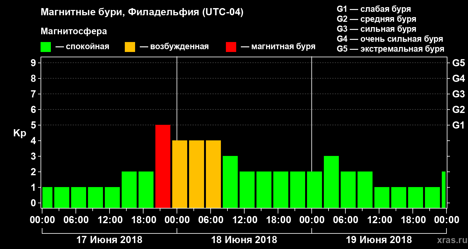 Магнитные бури в Филадельфии — 19 июня 2018 года