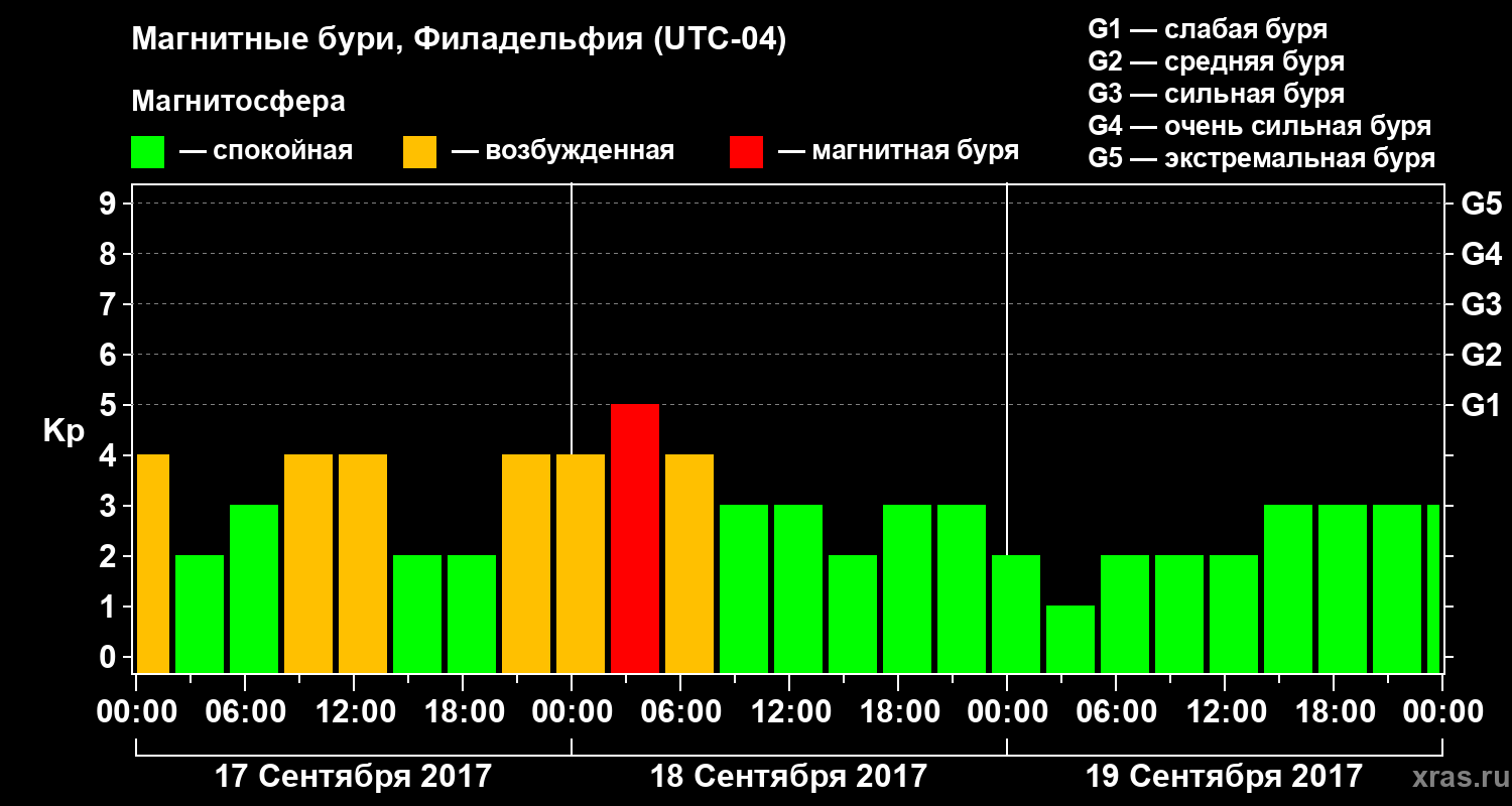 Магнитные бури в Филадельфии 19 сентября 2017 года