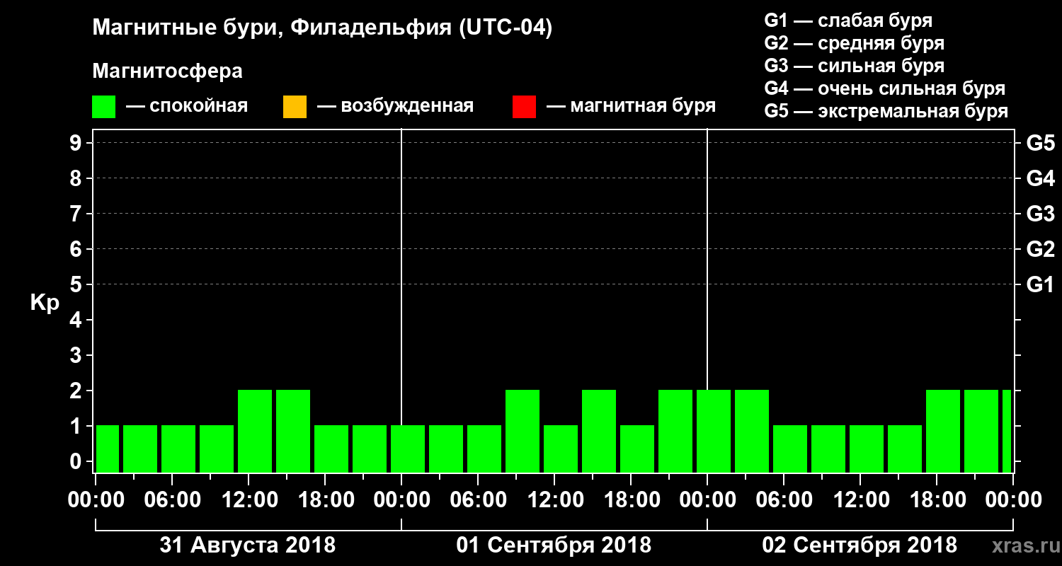 Магнитные бури в Филадельфии 2 сентября 2018 года