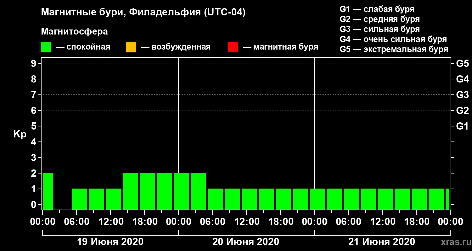 Магнитные бури в Филадельфии 21 июня 2020 года