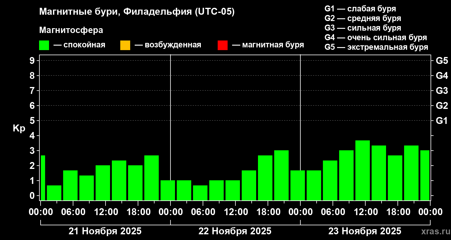 Магнитные бури в Филадельфии 23 ноября 2025 года
