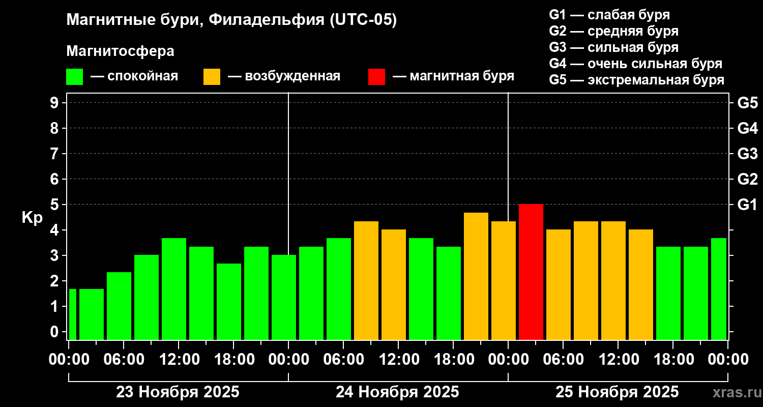 Магнитные бури в Филадельфии — 25 ноября 2025 года