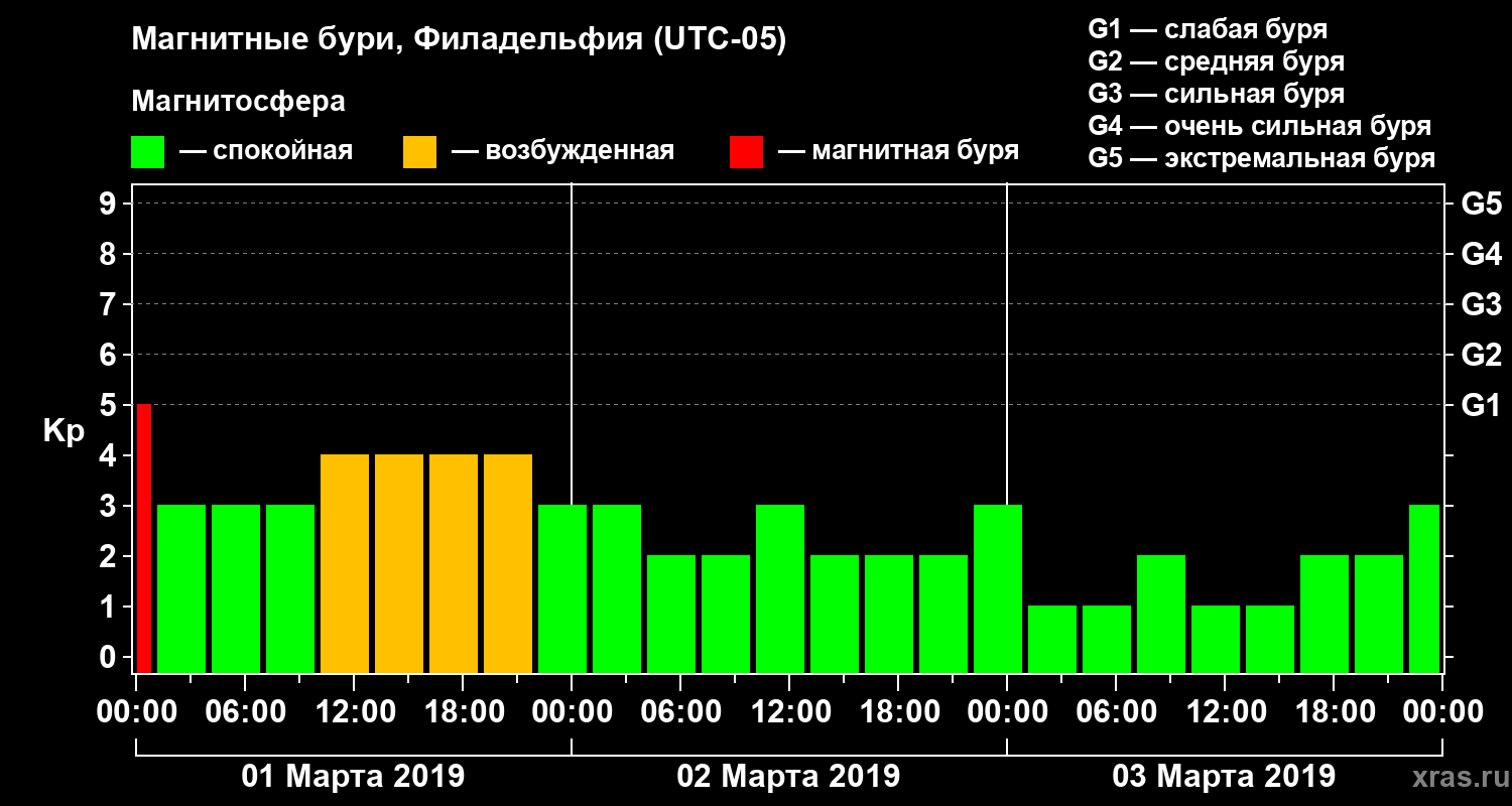 Магнитные бури в Филадельфии 3 марта 2019 года