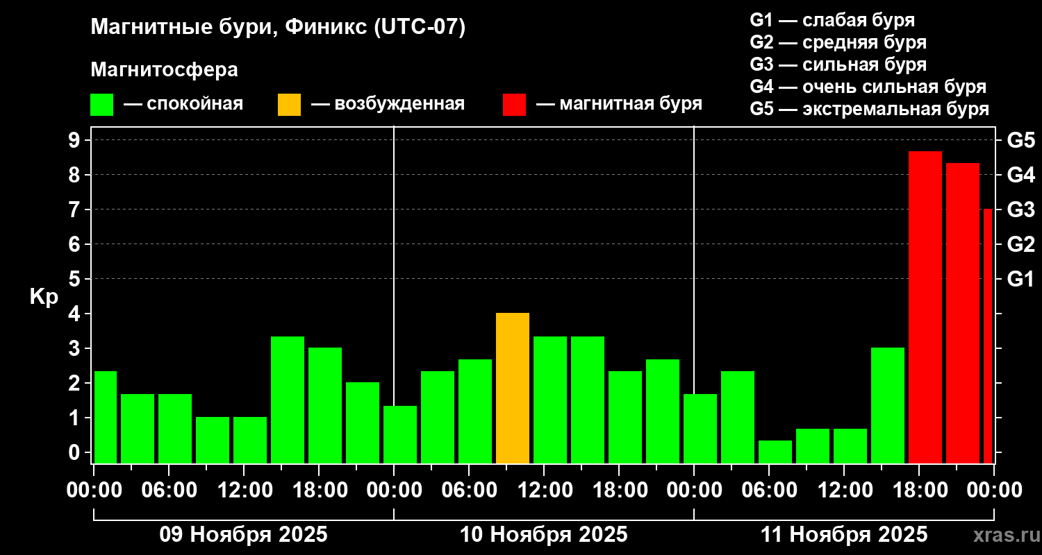 Магнитные бури в Финиксе 11 ноября 2025 года