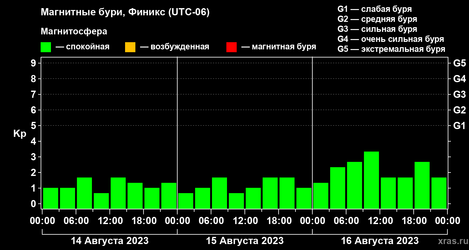 Магнитные бури в Финиксе 16 августа 2023 года