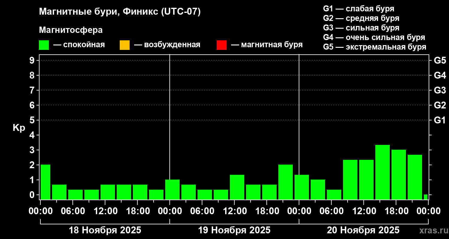 Магнитные бури в Финиксе 20 ноября 2025 года