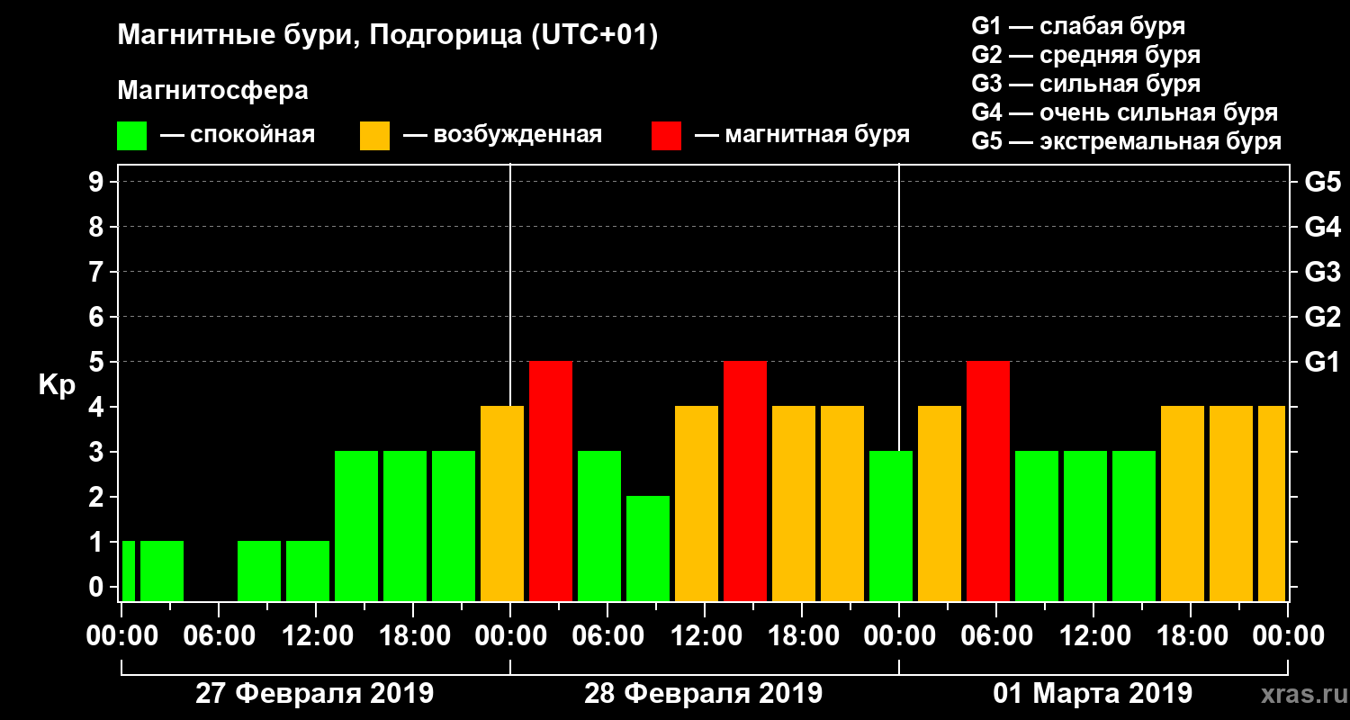 Магнитные бури в Подгорице — 1 марта 2019 года
