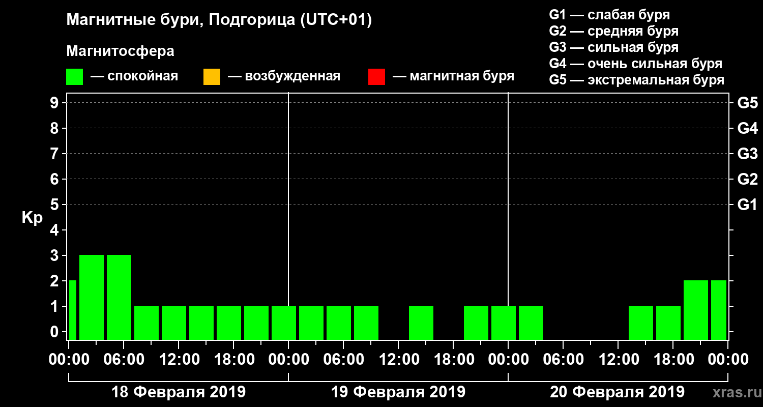 Магнитные бури в Подгорице — 20 февраля 2019 года