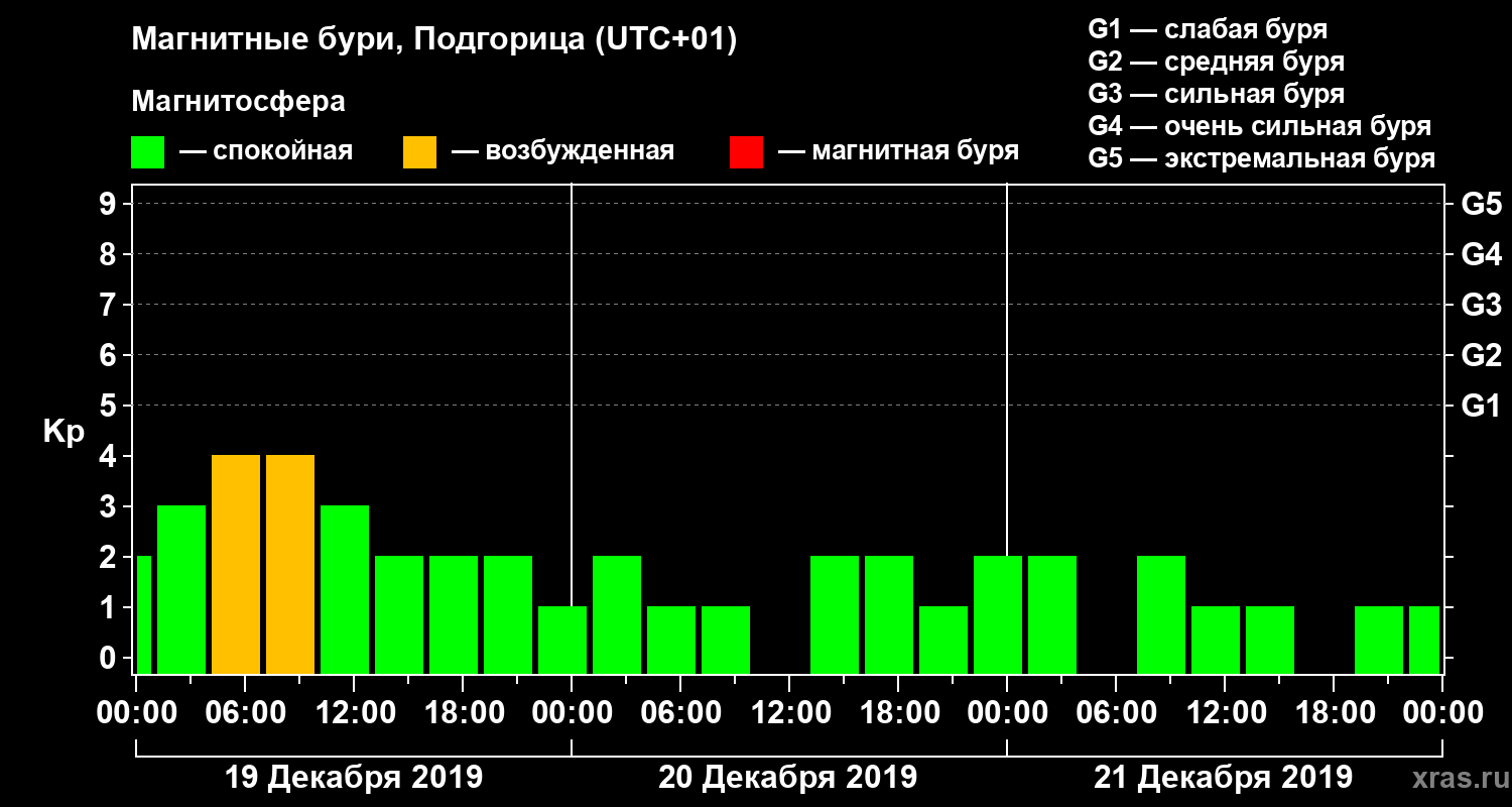 Магнитные бури в Подгорице — 21 декабря 2019 года