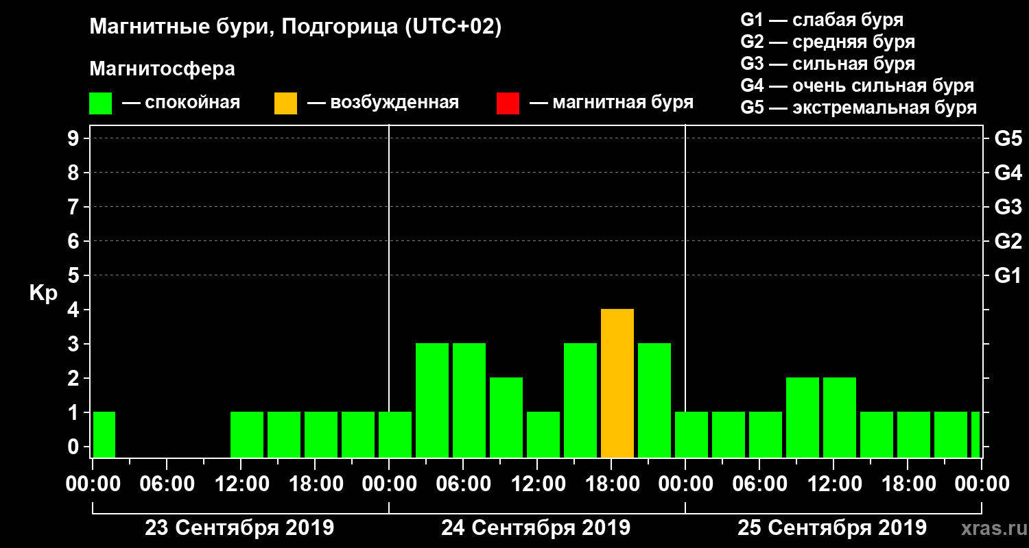 Магнитные бури в Подгорице — 25 сентября 2019 года