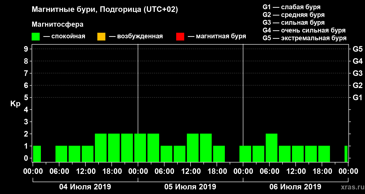 Магнитные бури в Подгорице — 6 июля 2019 года