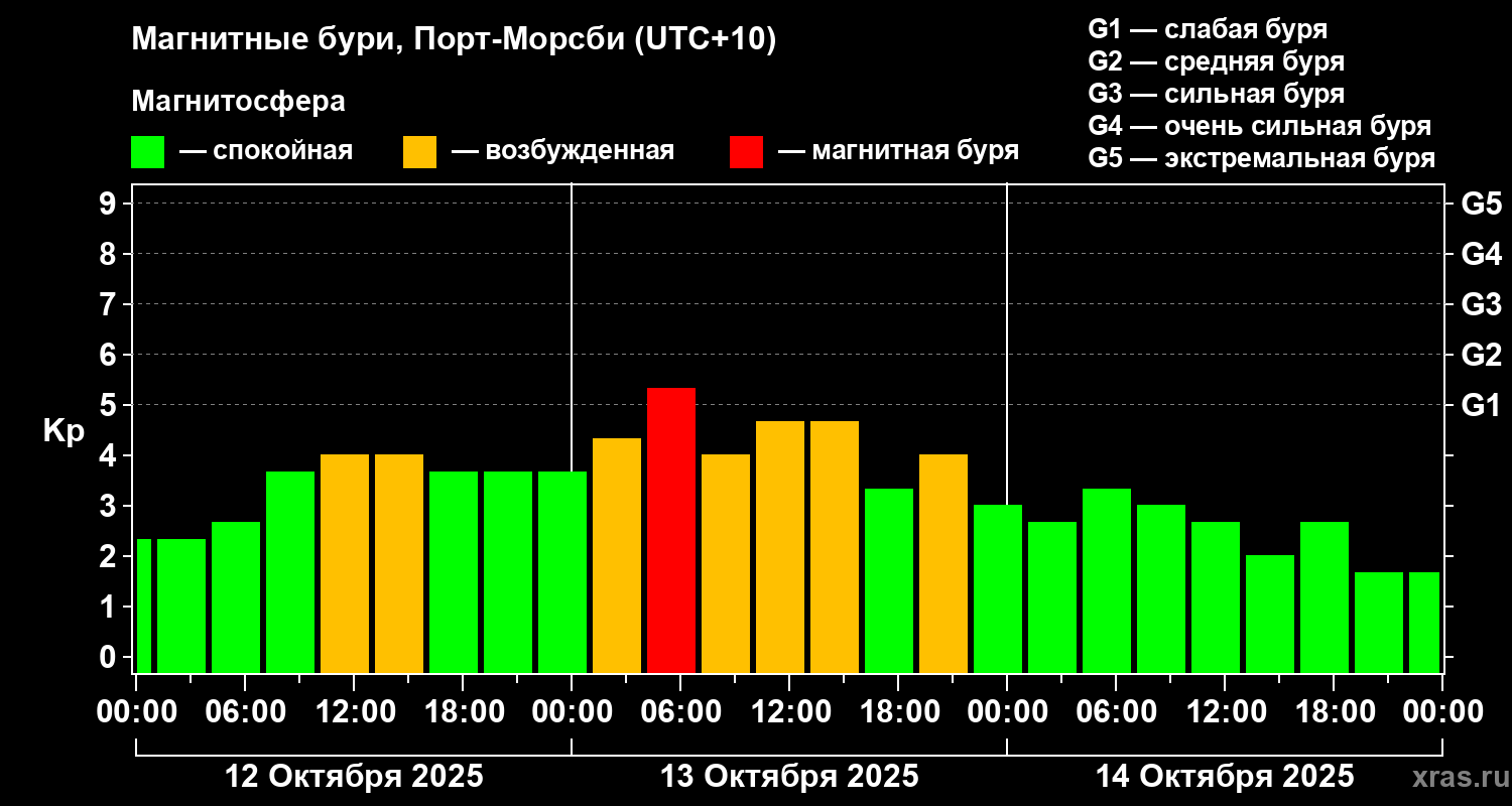 Магнитные бури Порт-Морсби 14 октября 2025 года
