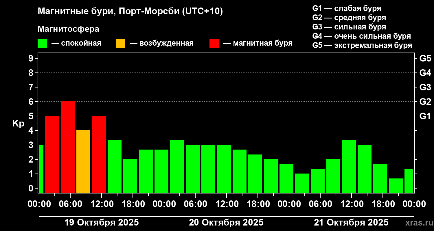 Магнитные бури Порт-Морсби 21 октября 2025 года
