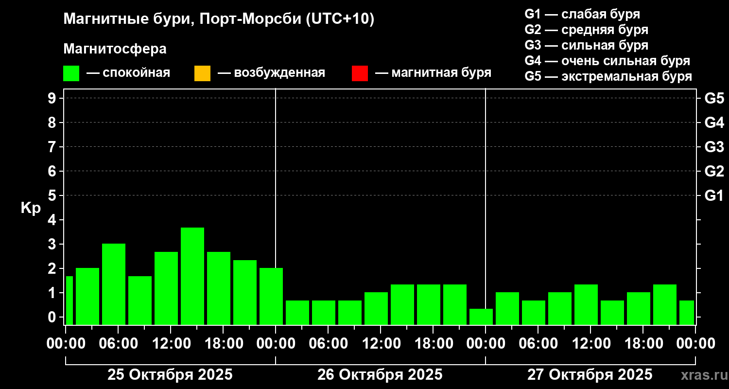 Магнитные бури Порт-Морсби 27 октября 2025 года