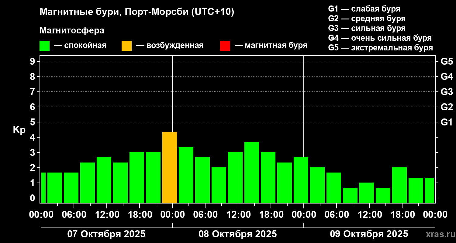 Магнитные бури Порт-Морсби 9 октября 2025 года