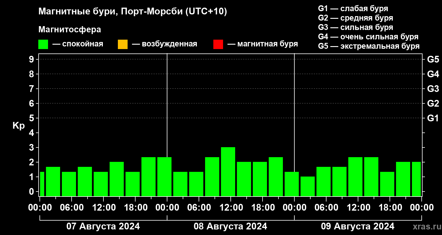 Магнитные бури Порт-Морсби 9 августа 2024 года