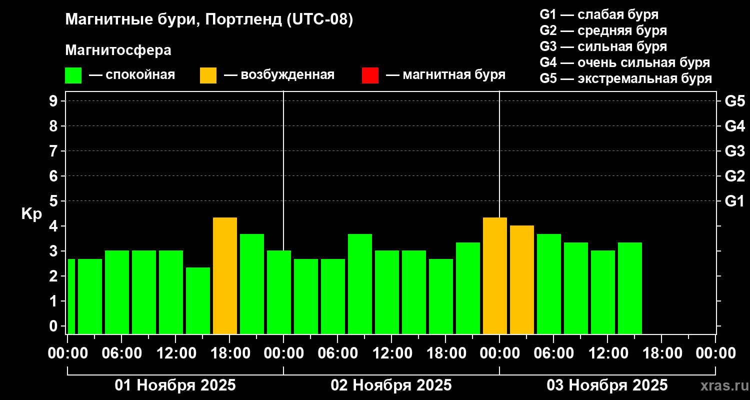 Магнитные бури в Портленде — 3 ноября 2025 года