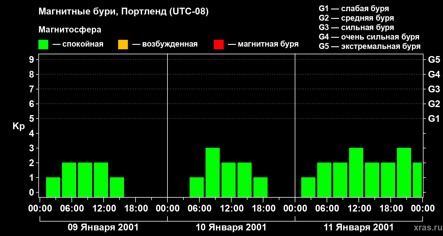 Магнитные бури в Портленде 11 января 2001 года