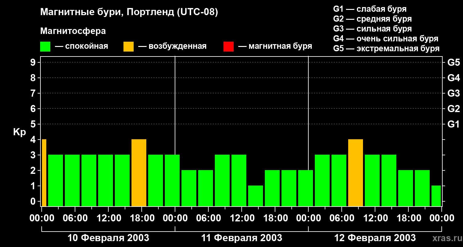 Магнитные бури в Портленде 12 февраля 2003 года