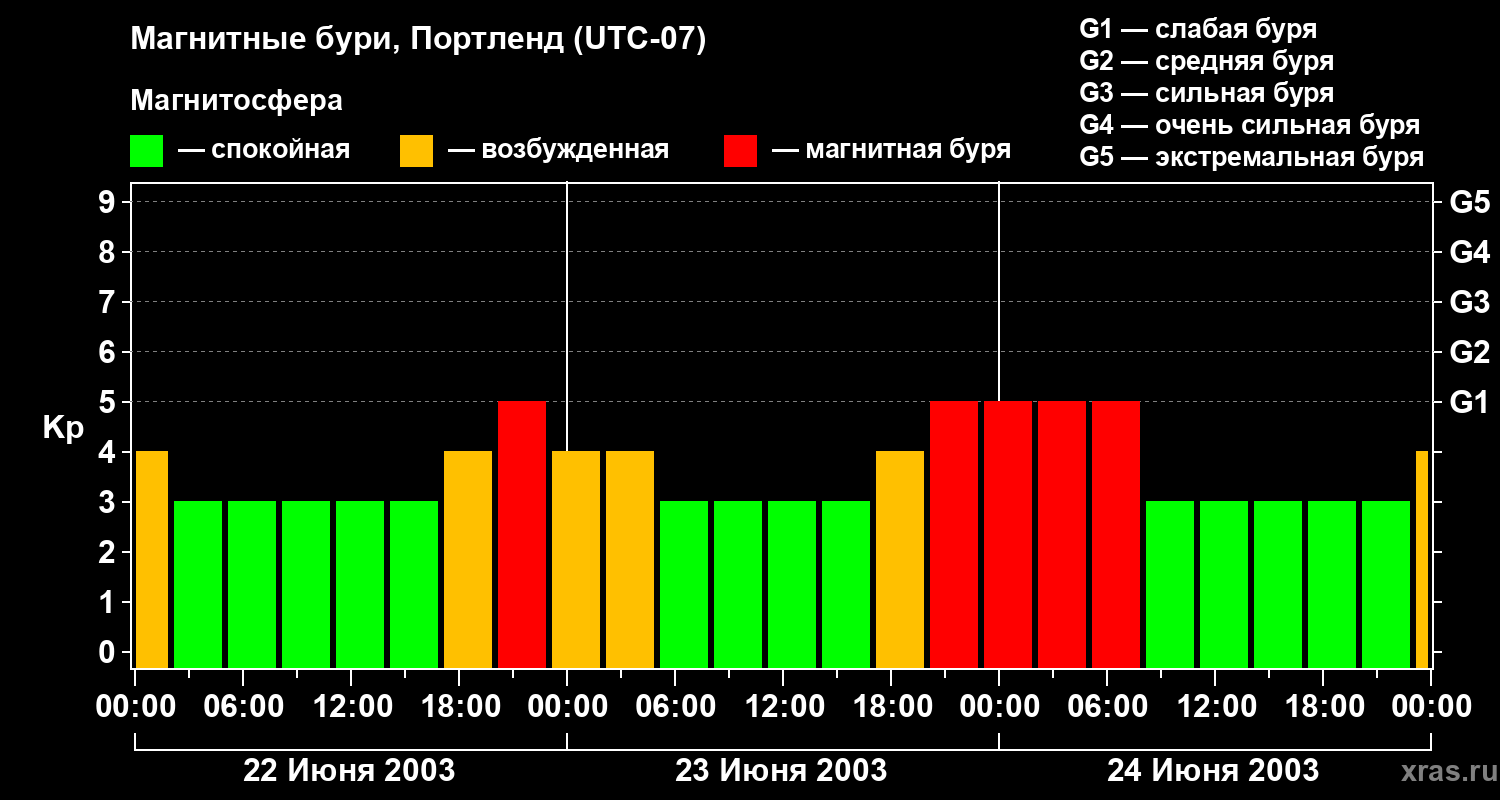 Магнитные бури в Портленде 24 июня 2003 года