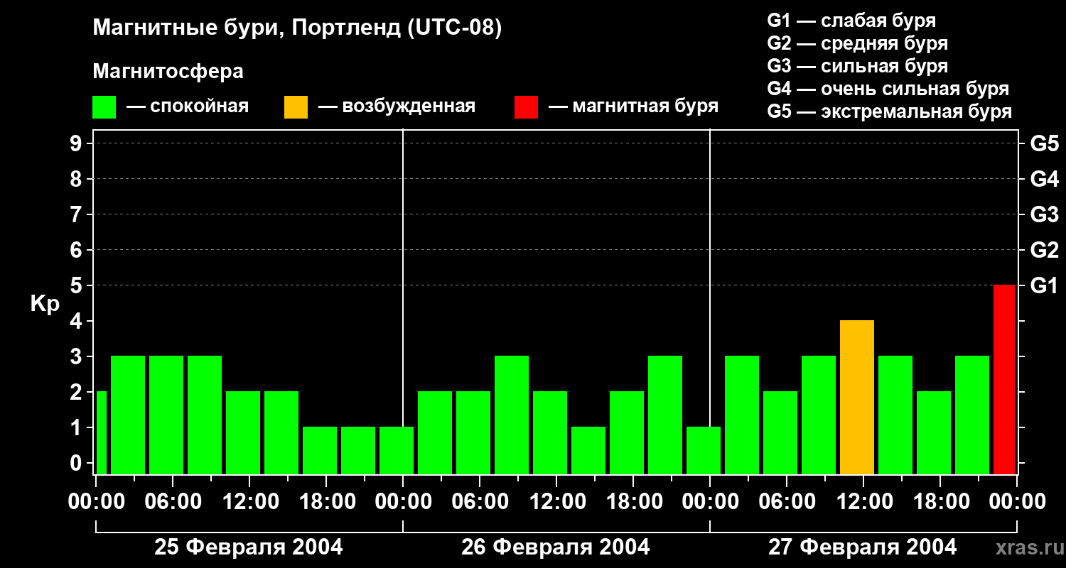 Магнитные бури в Портленде — 27 февраля 2004 года