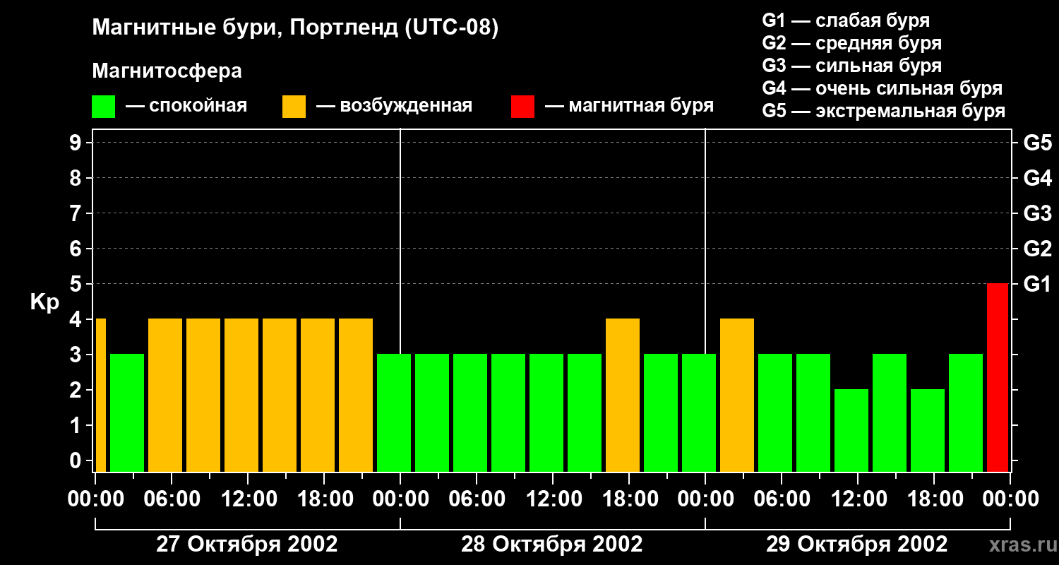 Магнитные бури в Портленде 29 октября 2002 года
