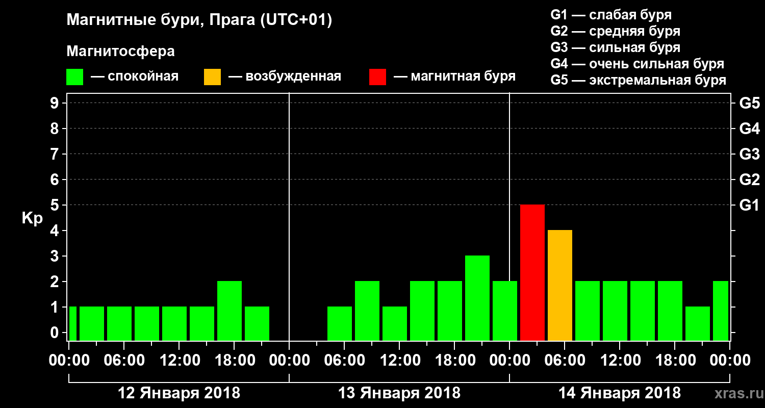 Магнитные бури в Праге — 14 января 2018 года