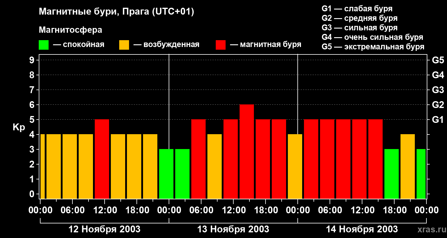 Магнитные бури в Праге в ноябре 2003 года