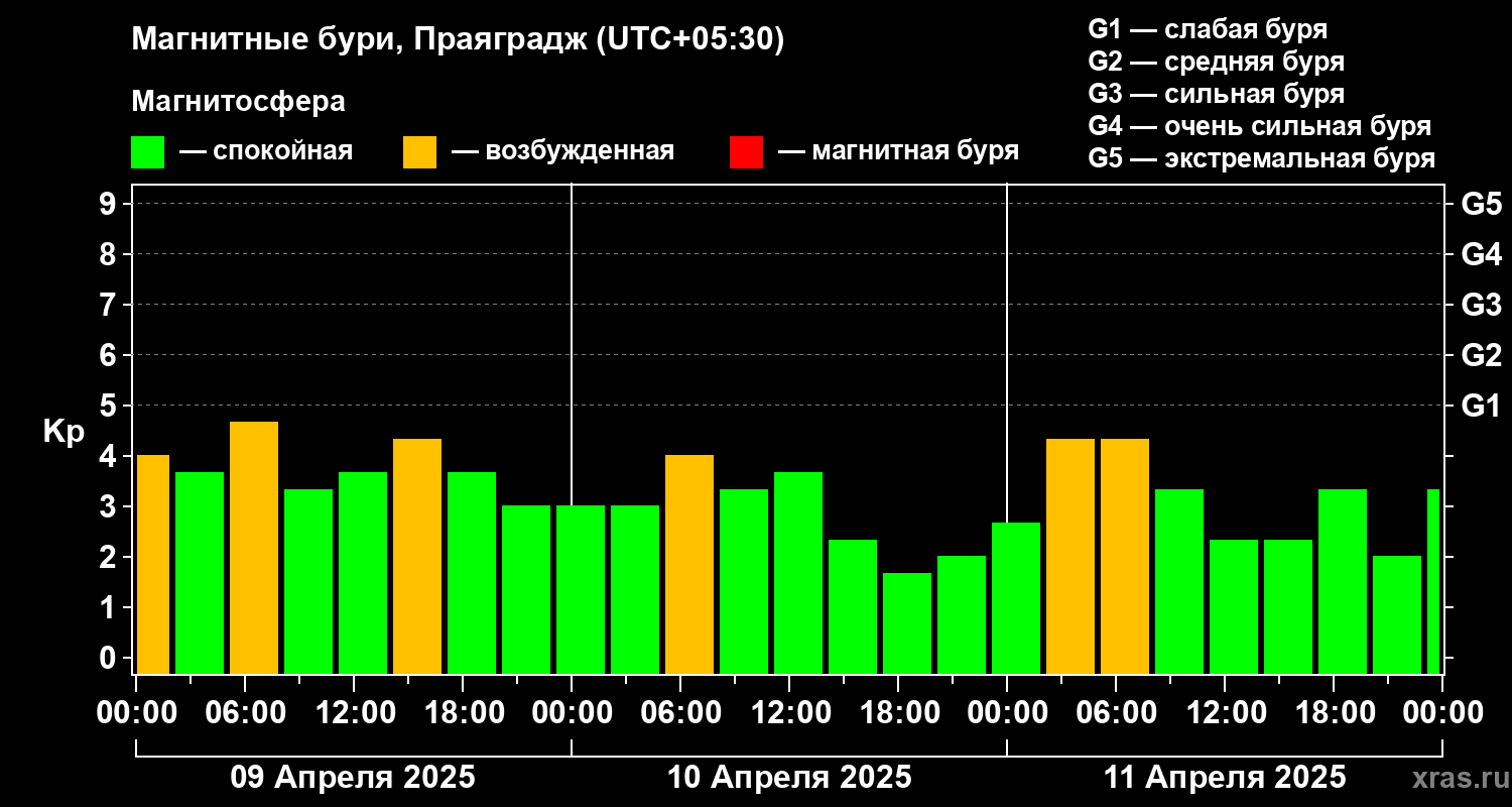 Магнитные бури в Праяградже — 11 апреля 2025 года