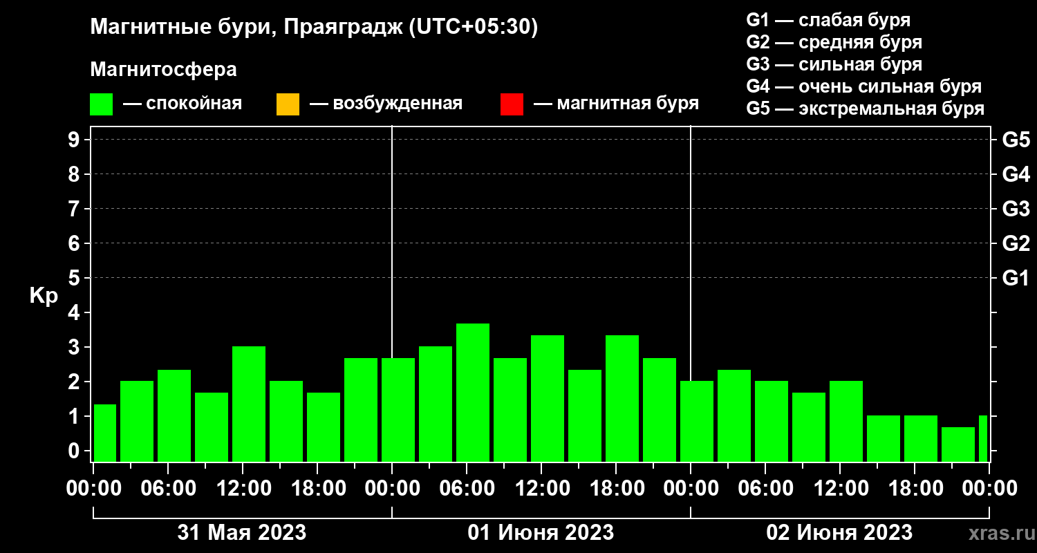 Магнитные бури в Праяградже — 2 июня 2023 года