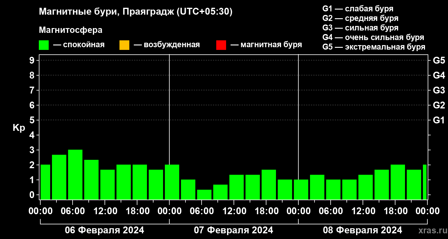 Магнитные бури в Праяградже — 8 февраля 2024 года