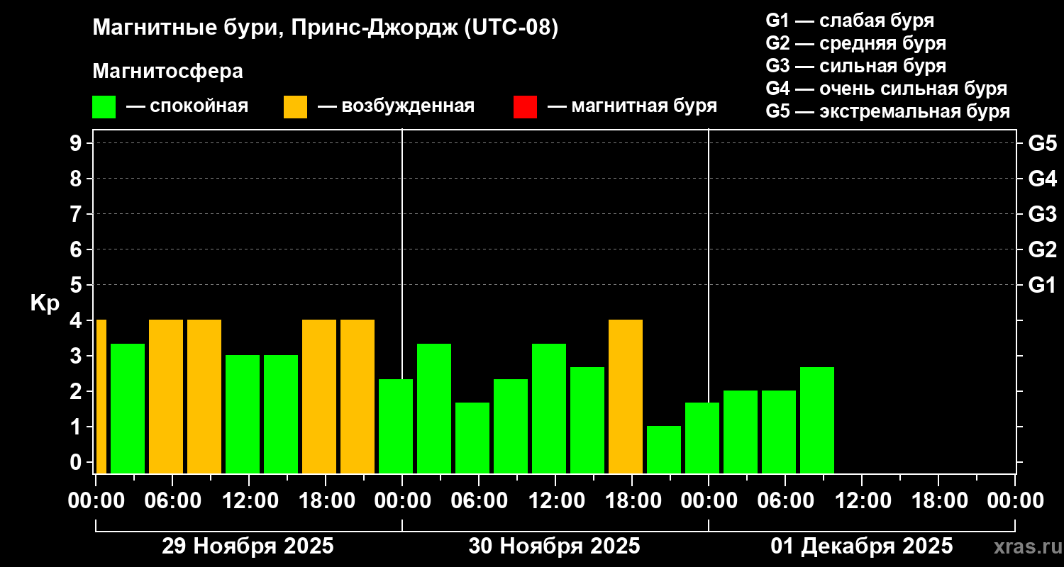 Магнитные бури в Принс-Джордже 1 декабря 2025 года
