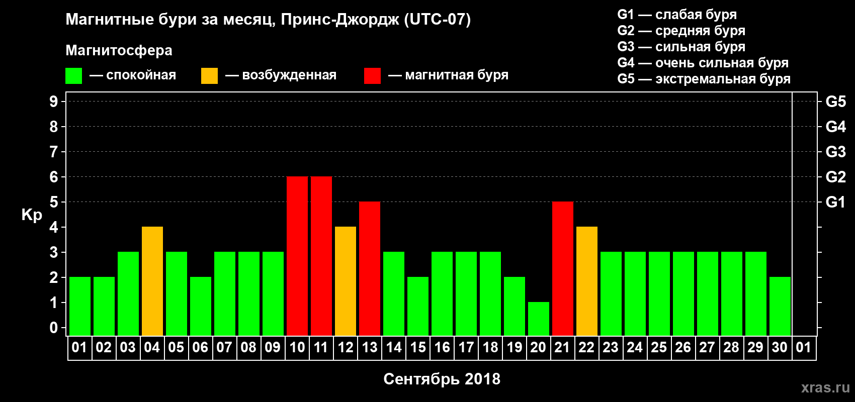 Магнитные бури в Принс-Джордже 1 сентября 2018 года