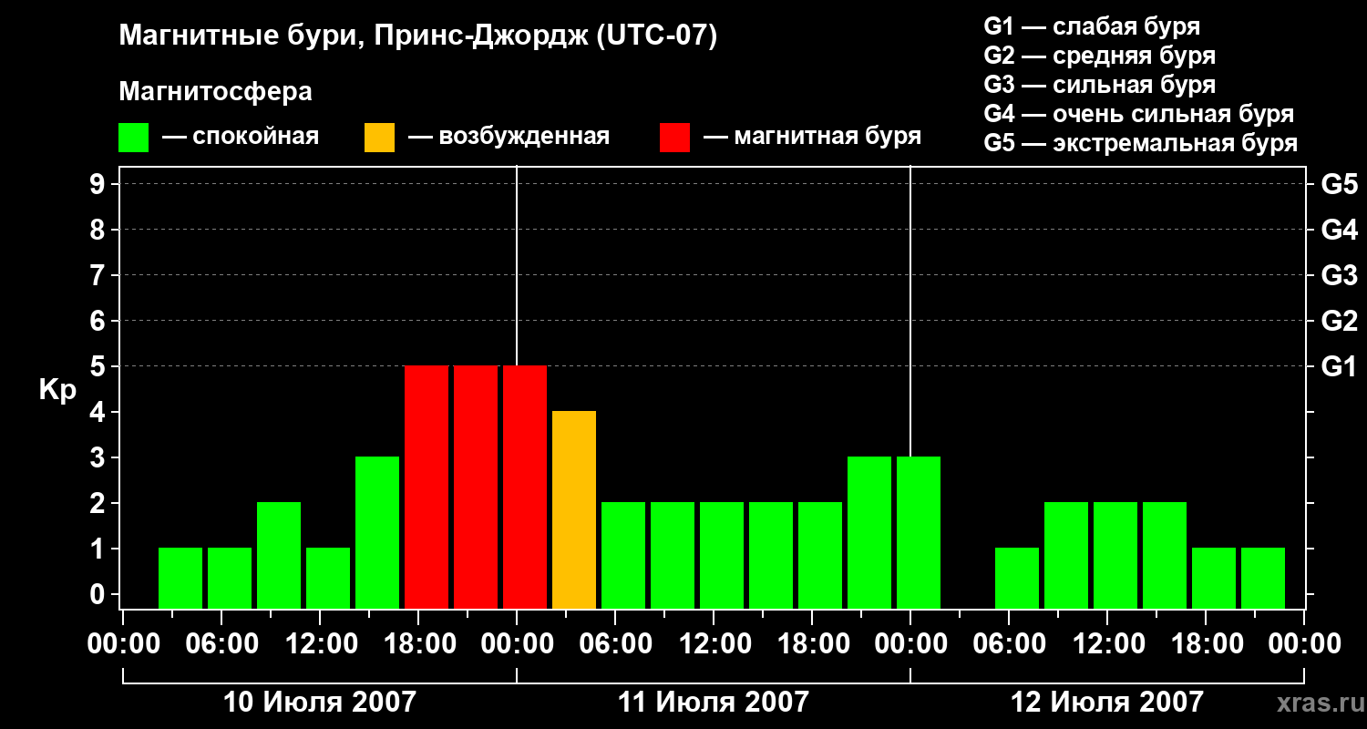 Магнитные бури в Принс-Джордже — 12 июля 2007 года