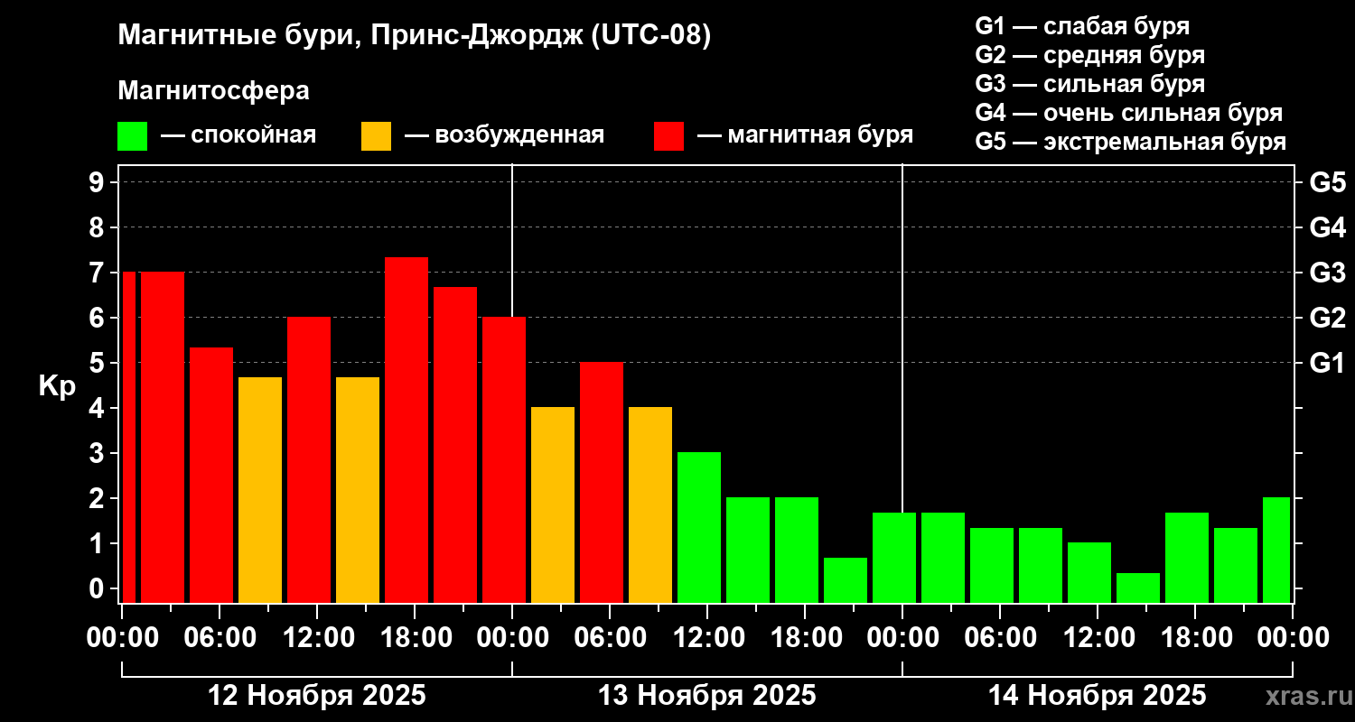 Магнитные бури в Принс-Джордже 14 ноября 2025 года