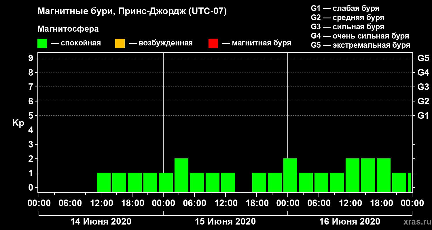 Магнитные бури в Принс-Джордже 16 июня 2020 года