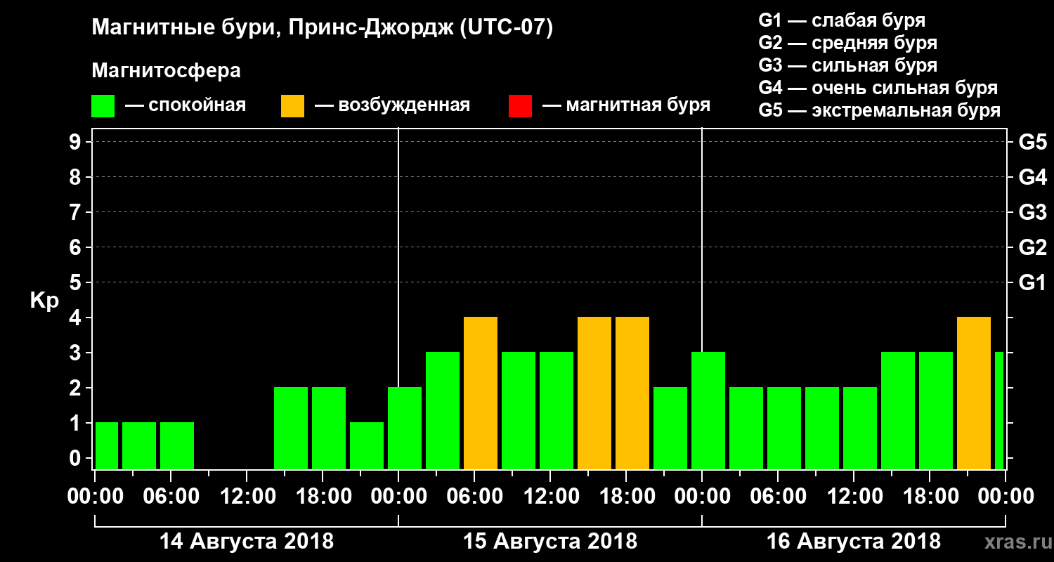 Магнитные бури в Принс-Джордже 16 августа 2018 года