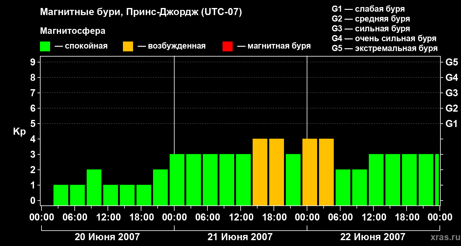 Магнитные бури в Принс-Джордже — 22 июня 2007 года