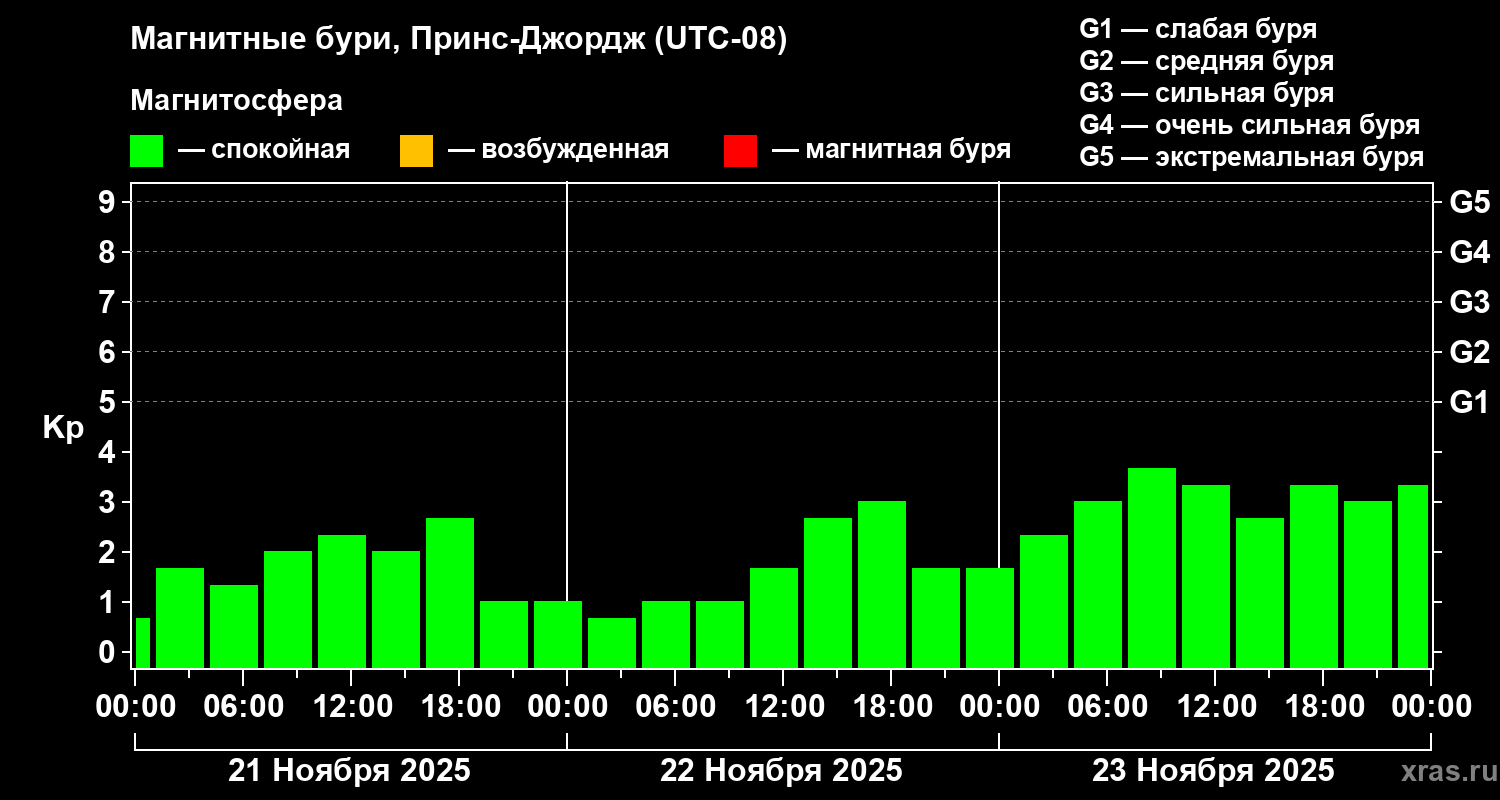 Магнитные бури в Принс-Джордже — 23 ноября 2025 года