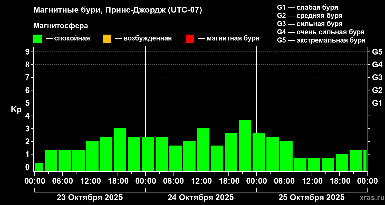 Магнитные бури в Принс-Джордже — 25 октября 2025 года