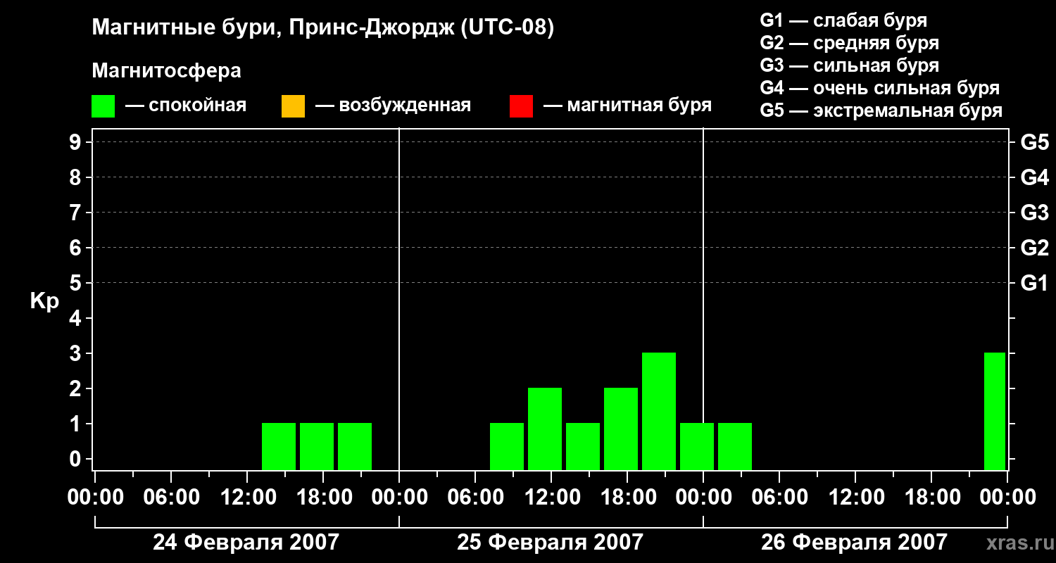Магнитные бури в Принс-Джордже — 26 февраля 2007 года