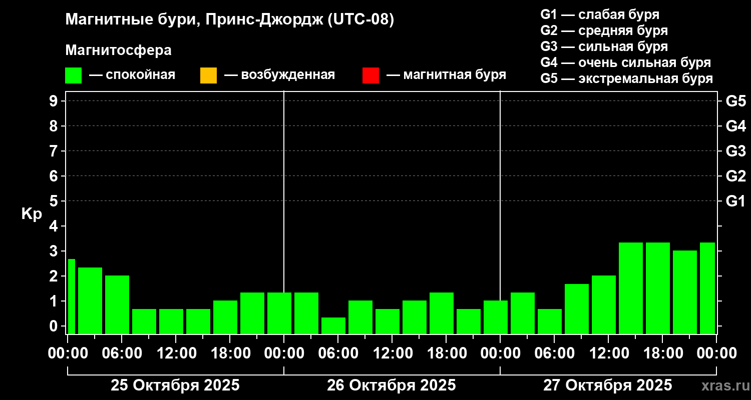Магнитные бури в Принс-Джордже — 27 октября 2025 года