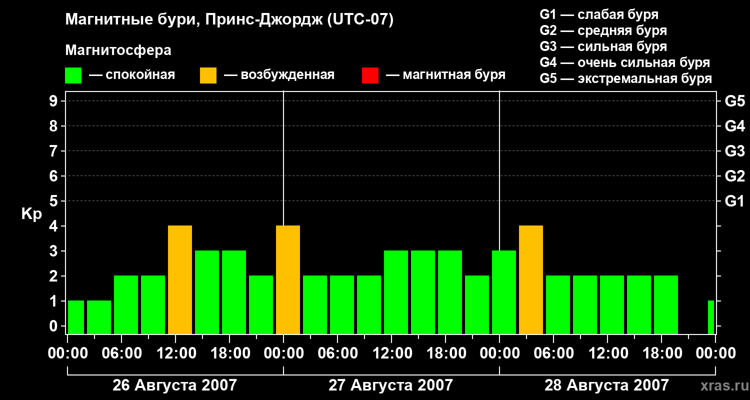 Магнитные бури в Принс-Джордже — 28 августа 2007 года