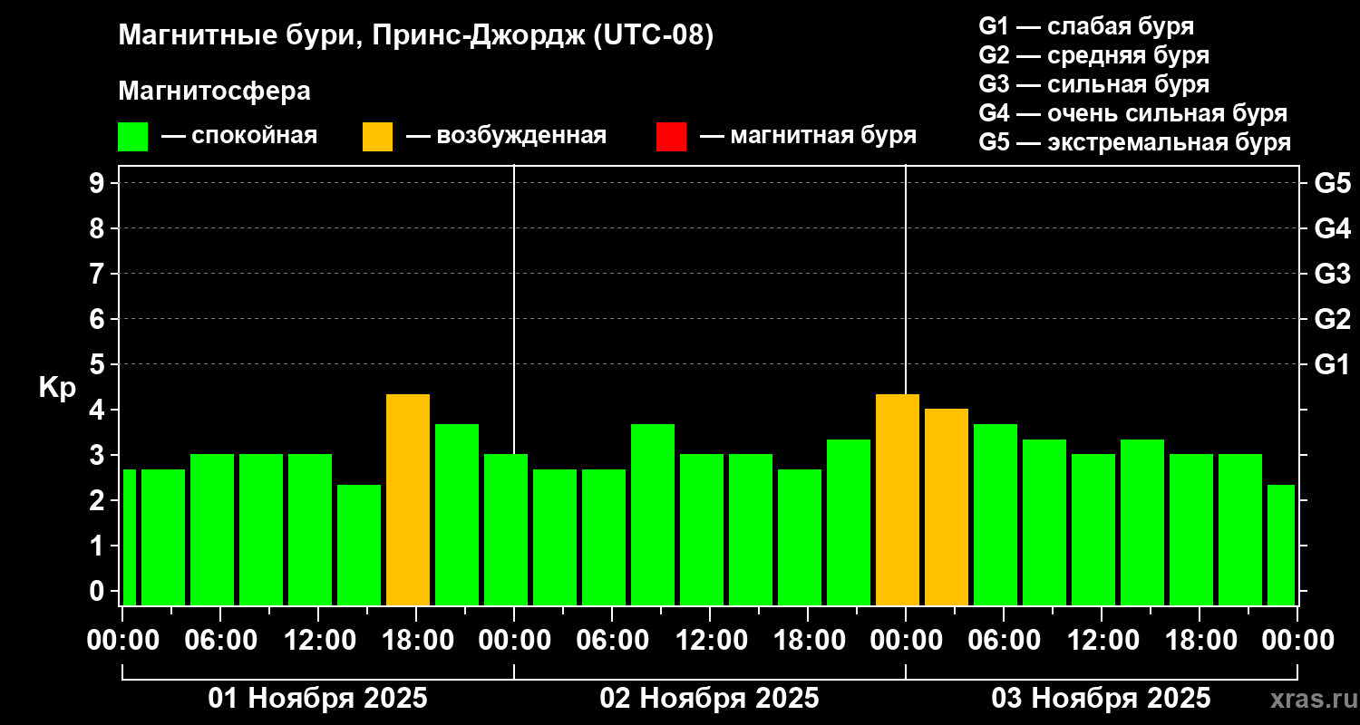 Магнитные бури в Принс-Джордже 3 ноября 2025 года