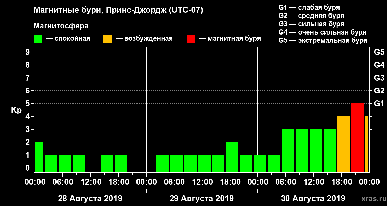 Магнитные бури в Принс-Джордже — 30 августа 2019 года