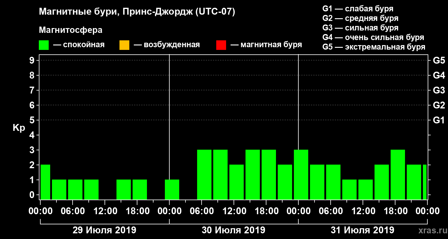 Магнитные бури в Принс-Джордже — 31 июля 2019 года
