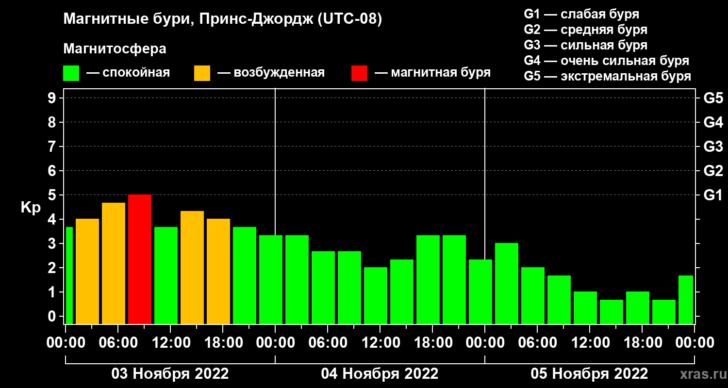 Магнитные бури в Принс-Джордже 5 ноября 2022 года