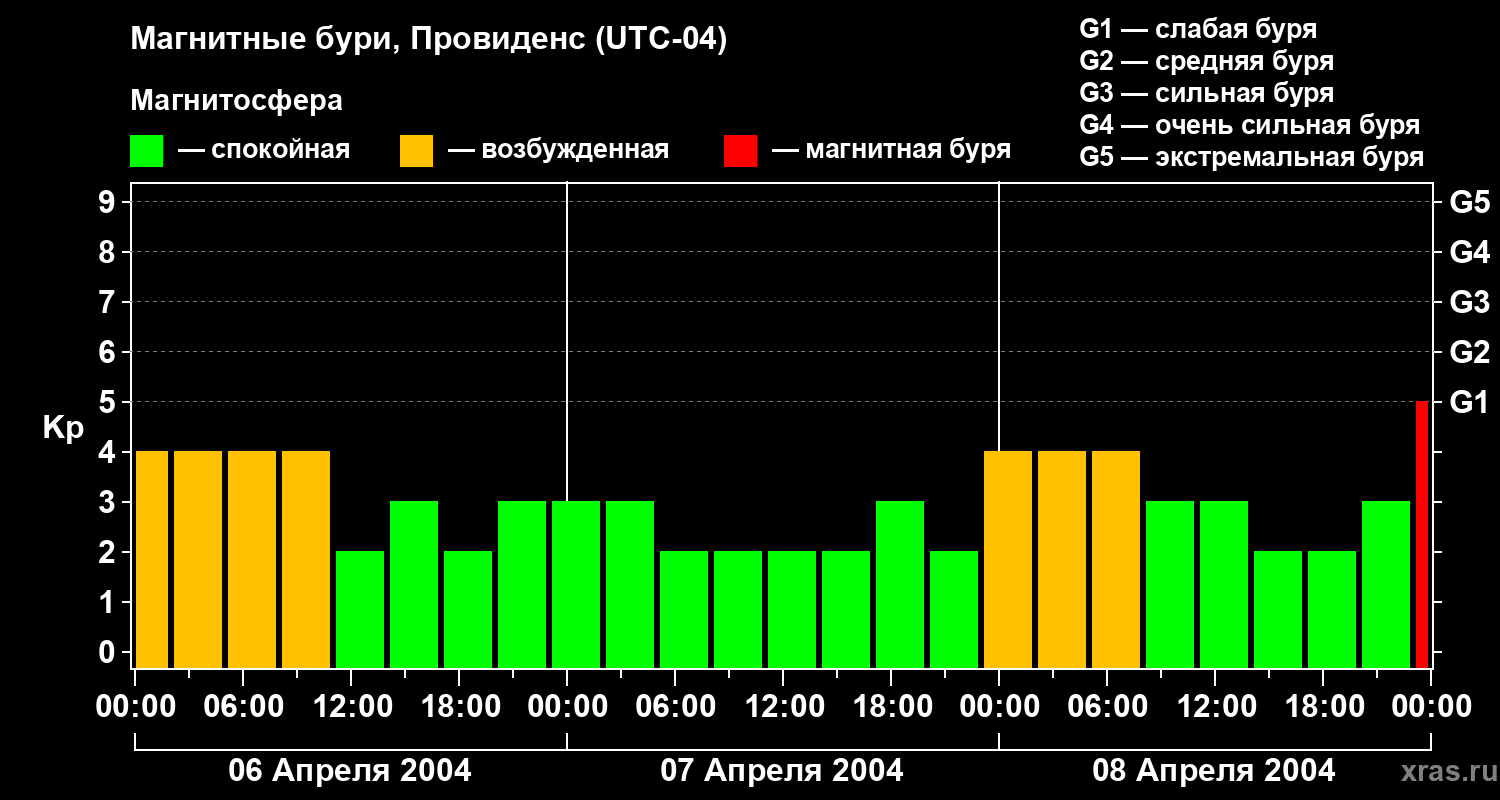 Магнитные бури в Провиденсе — 8 апреля 2004 года
