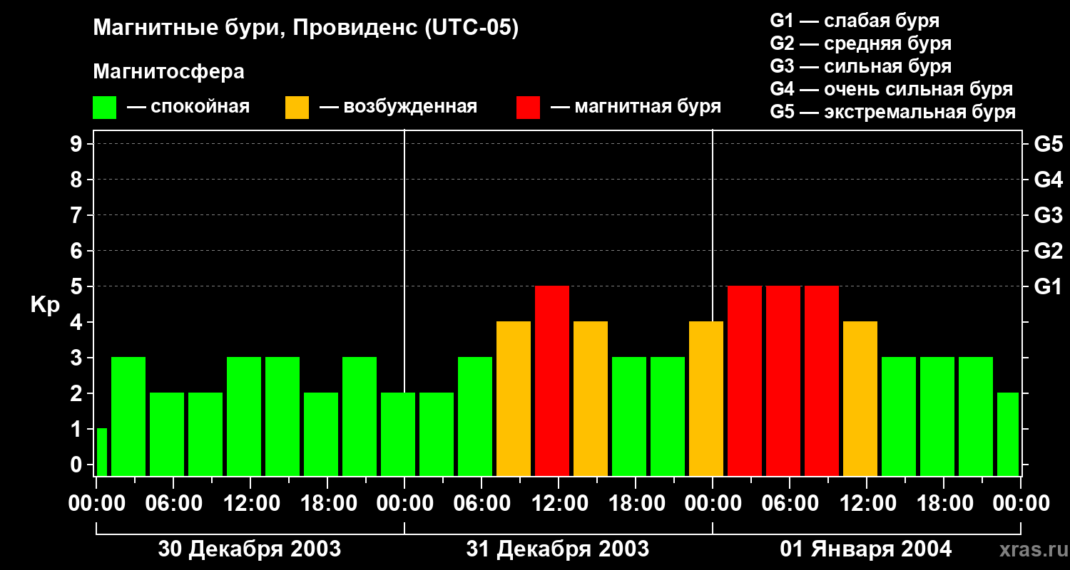 Магнитные бури в Провиденсе — 1 января 2004 года