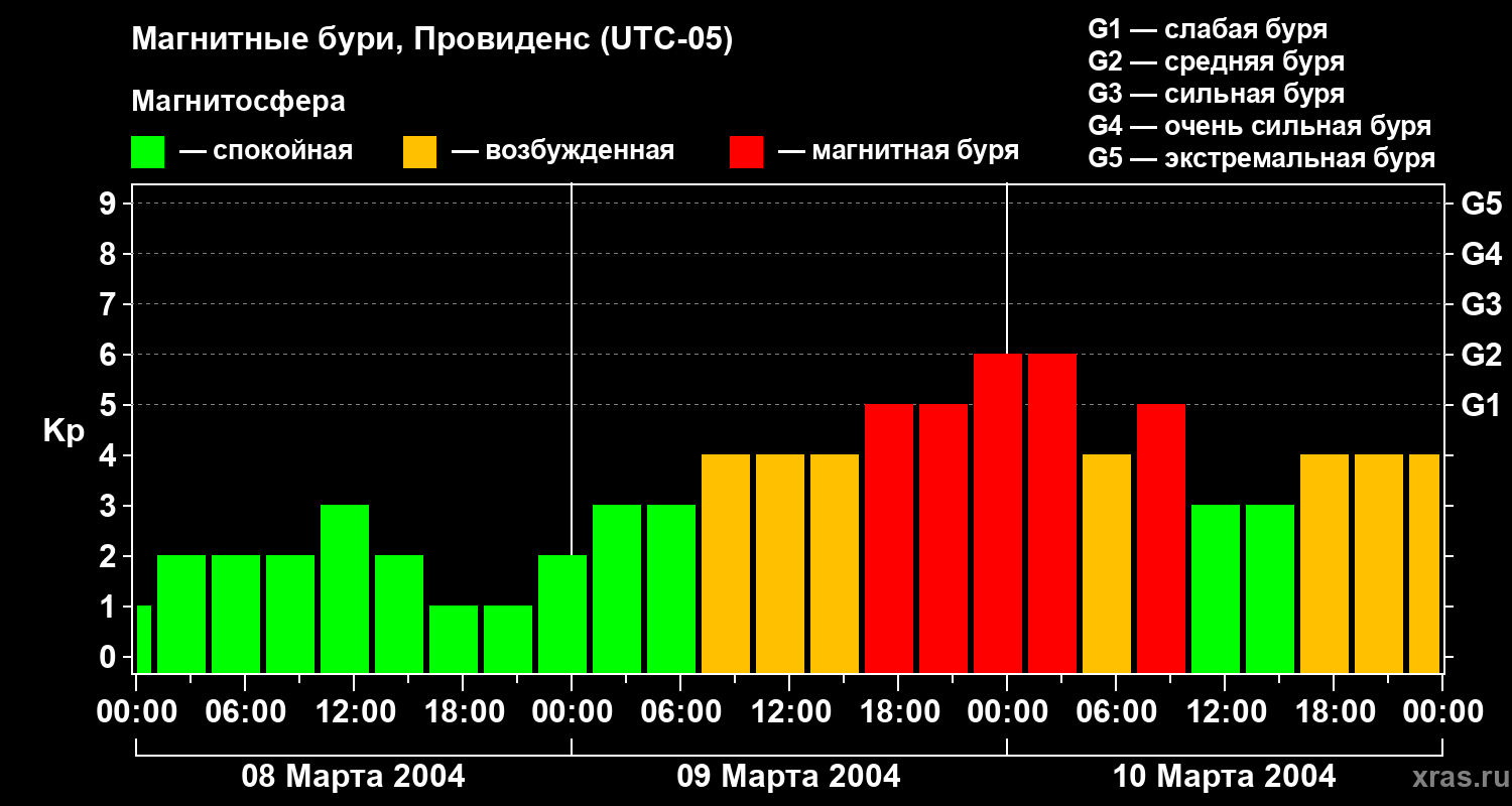 Магнитные бури в Провиденсе — 10 марта 2004 года